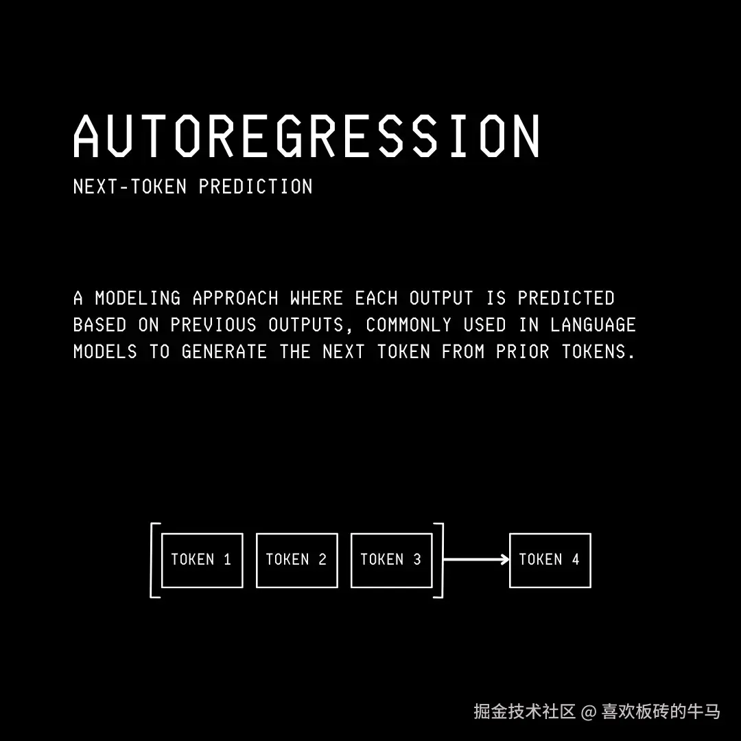 这一过程被称为自动回归(Autoregression),这意味着每个单词都是基于前一个单词生成的。