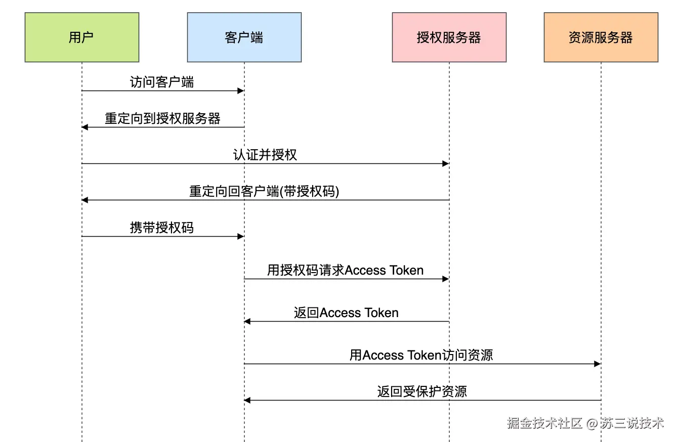 - 授权服务器(Authorization Server):颁发访问令牌