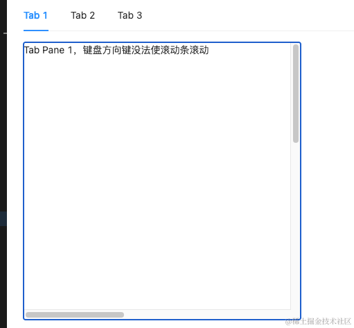 结果问题果然复现:只要页面在 Tabs 内,方向键就会失灵。