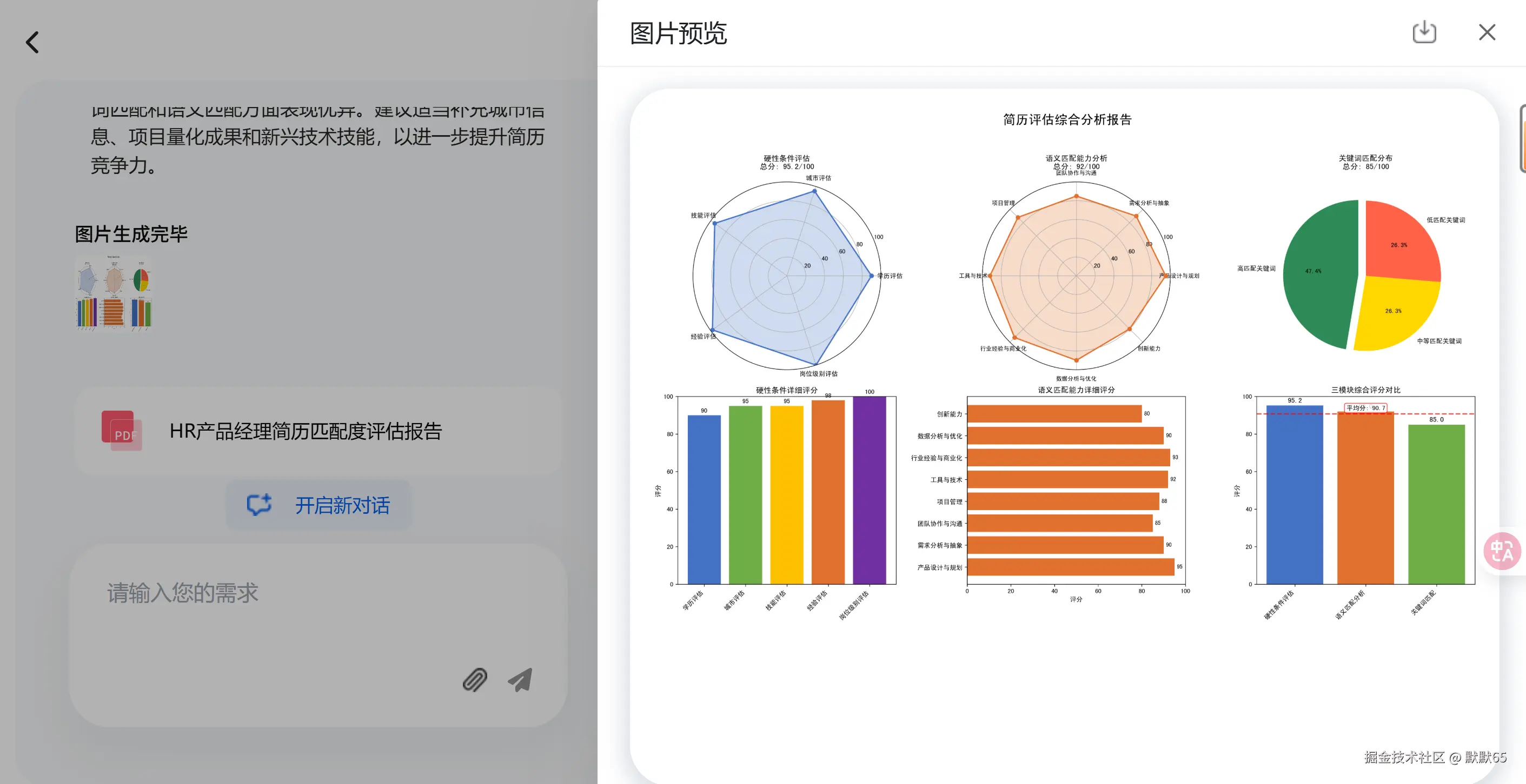 - 综合评分报告:最终匹配度 95.3%,并附改进建议。