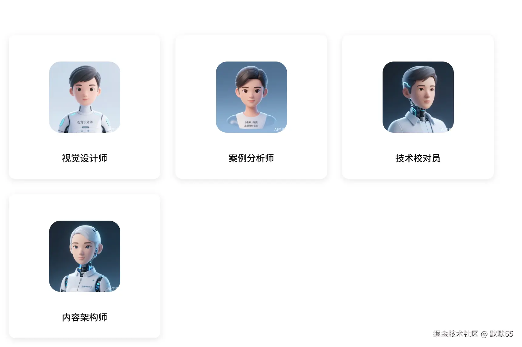 - 通常会生成四个智能体,分别承担不同角色。