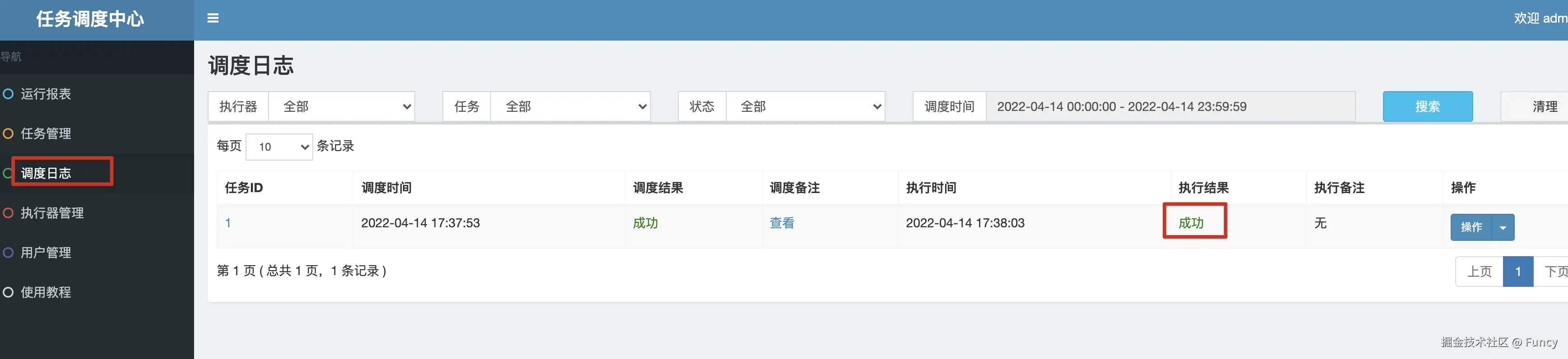 直接点击“保存”即可,之后可以在“调度日志”菜单查看任务执行情况: