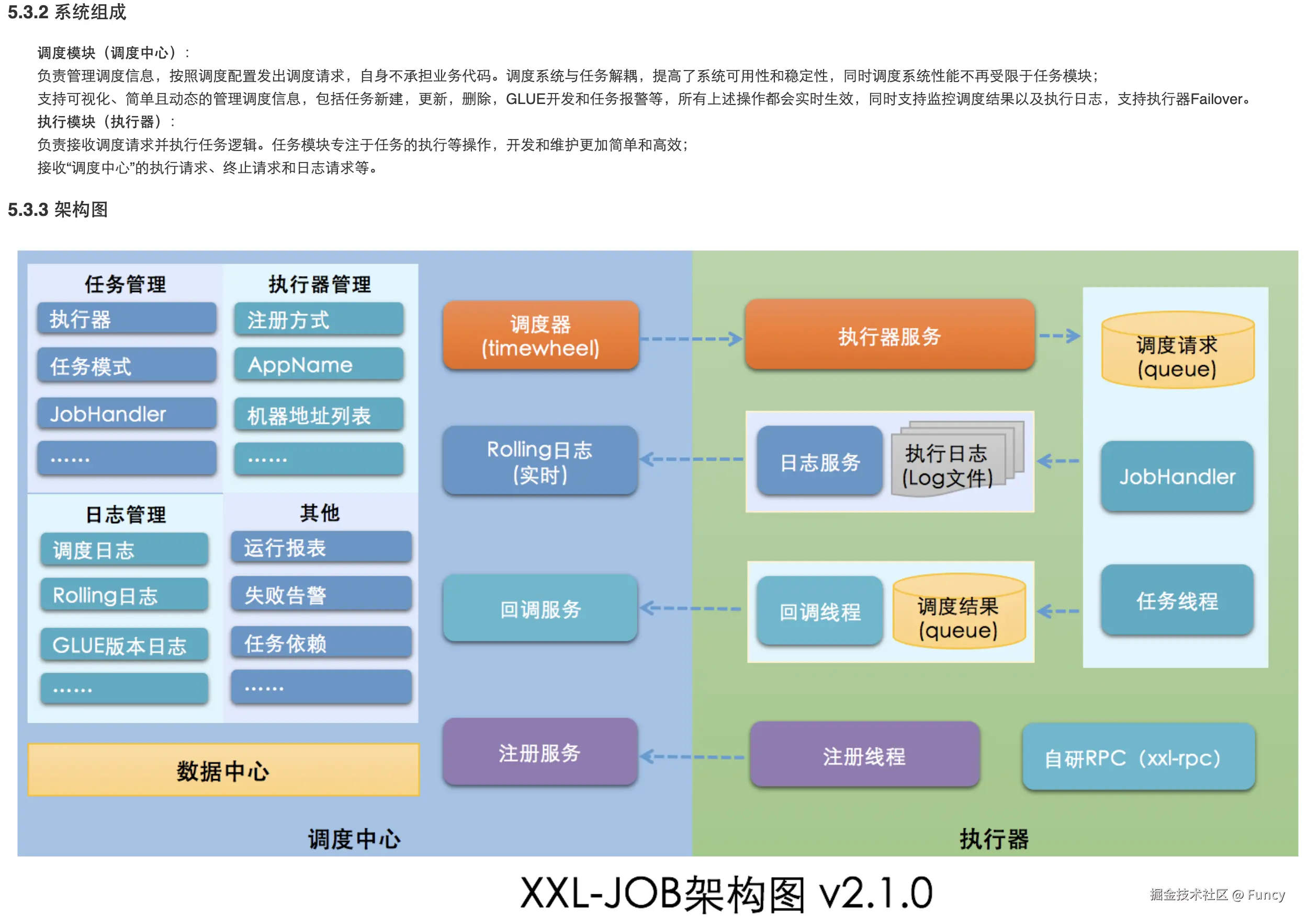 关于该项目的更多细节,可以参考官方文档www.xuxueli.com/xxl-job/,这里截取官方的架构图: