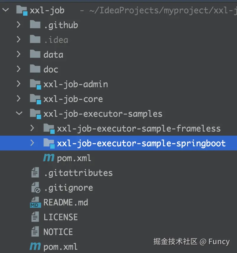 xxl-job提供了两个执行器示例,考虑到当前开发基本上基于springboot,本系列将重点分析集成了springboot的执行器示例,即xxl-job-executor-sample-springboot。