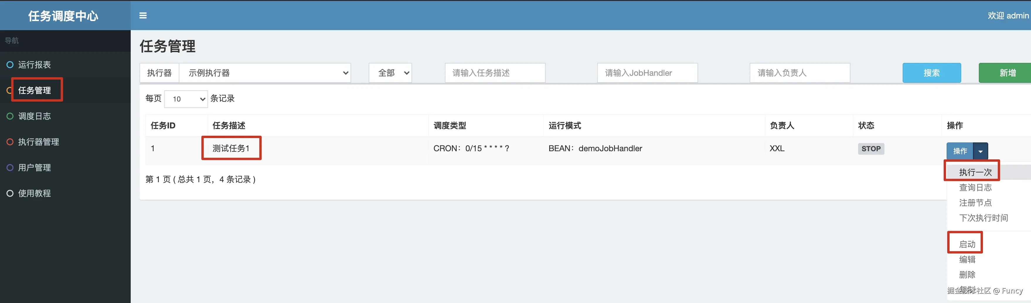 admin注册地址的配置,以及项目的启动(admin与executor) - 执行定时任务,介绍了如何执行