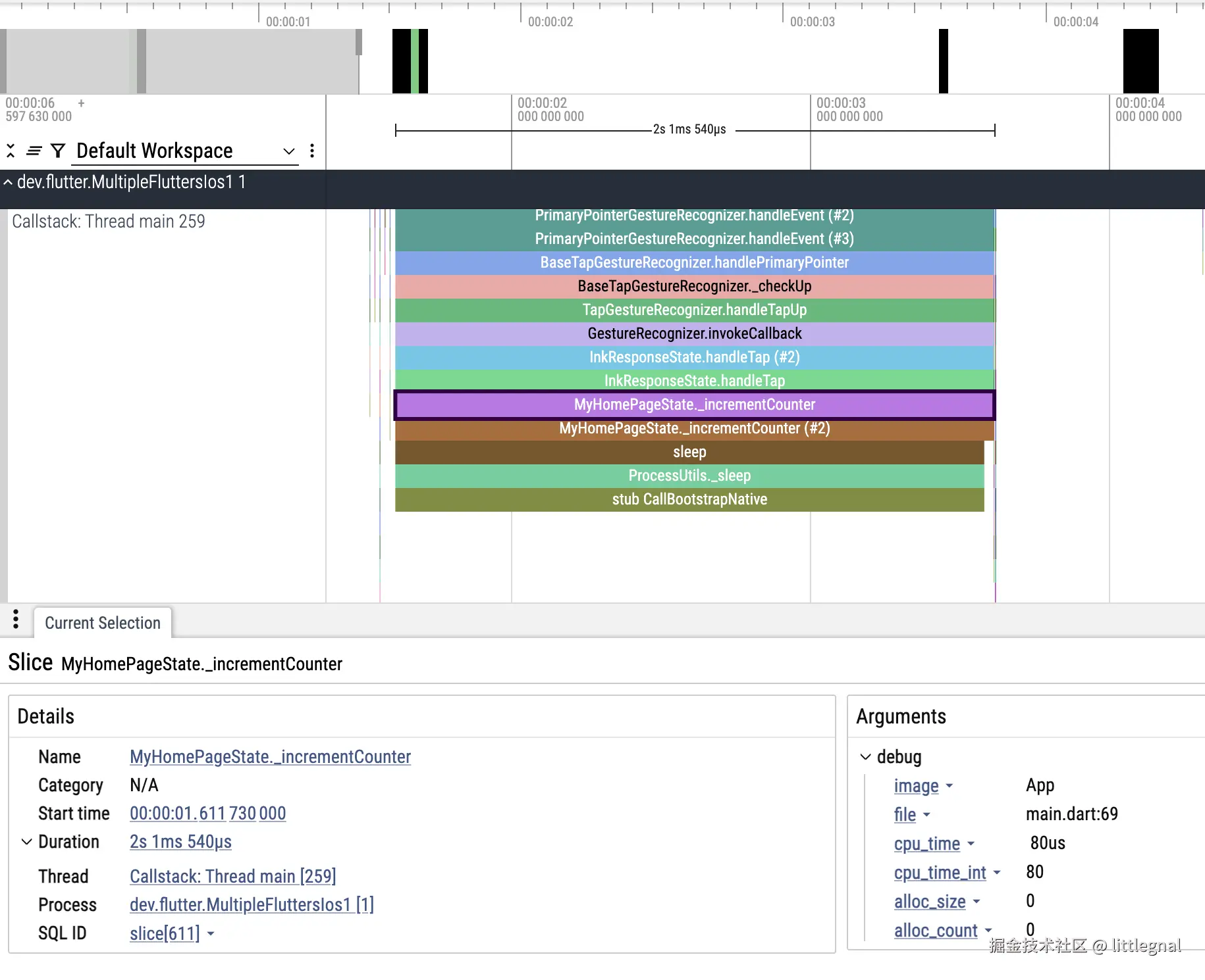 MyHomePageState._incrementCounter (#2) (2001.540 ms)