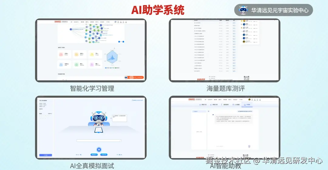 为解决传统教学中 “进度难跟踪、问题难解决” 的痛点,华清远见配套AI助学系统,为高校嵌入式教学构建多维度学习保障机制。系统可实时跟踪学生学习数据,如课程观看进度、实验完成情况、阶段测评成绩等,通过大数据分析生成个性化学习报告,教师可依据报告精准掌握每个学生的学习状况,及时调整教学策略,确保教学质量。