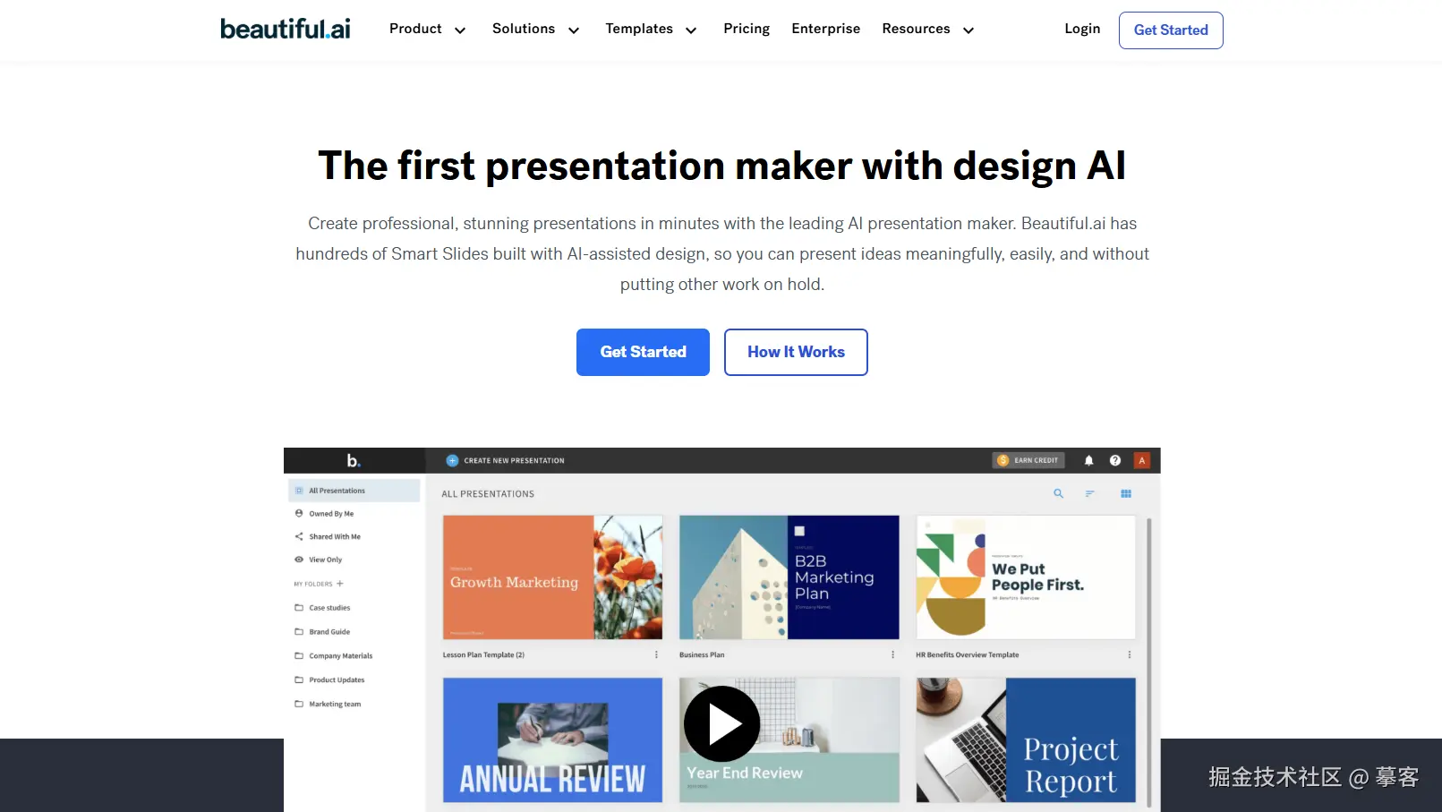 Beautiful.ai 是一款专注于智能PPT设计的AI工具,帮助职场人快速制作美观、专业的演示文稿。它通过AI自动调整布局、图表和版式,让每一页幻灯片保持视觉统一和专业感,无需用户从零设计。