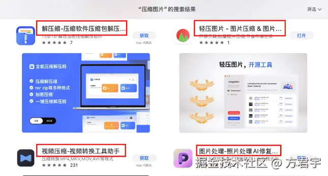 他们的标题里都包含 Compress/压缩、Photo/图片、Resize/调整大小、Format Conversion/格式转换。