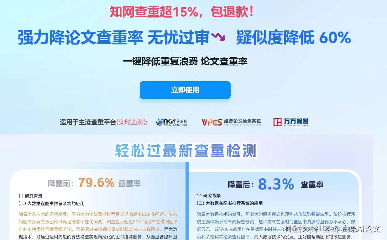 未来,学术写作规范将朝着技术与理念协同发展的方向前进。随着人工智能、大数据等技术的不断发展,查重和“防重”技术将更加精准和智能化。查重系统将能够更好地理解论文的语义和逻辑,准确区分合理引用与抄袭;AIGC检测技术将不断完善,有效识别AI辅助写作的内容。同时,“防重”理念将更加深入人心,贯穿于学术研究的各个环节。科研人员将更加自觉地遵守学术诚信原则,从源头上杜绝学术不端行为。高校和科研机构将进一步完善学术管理机制,加强对学术研究全过程的指导和监督。