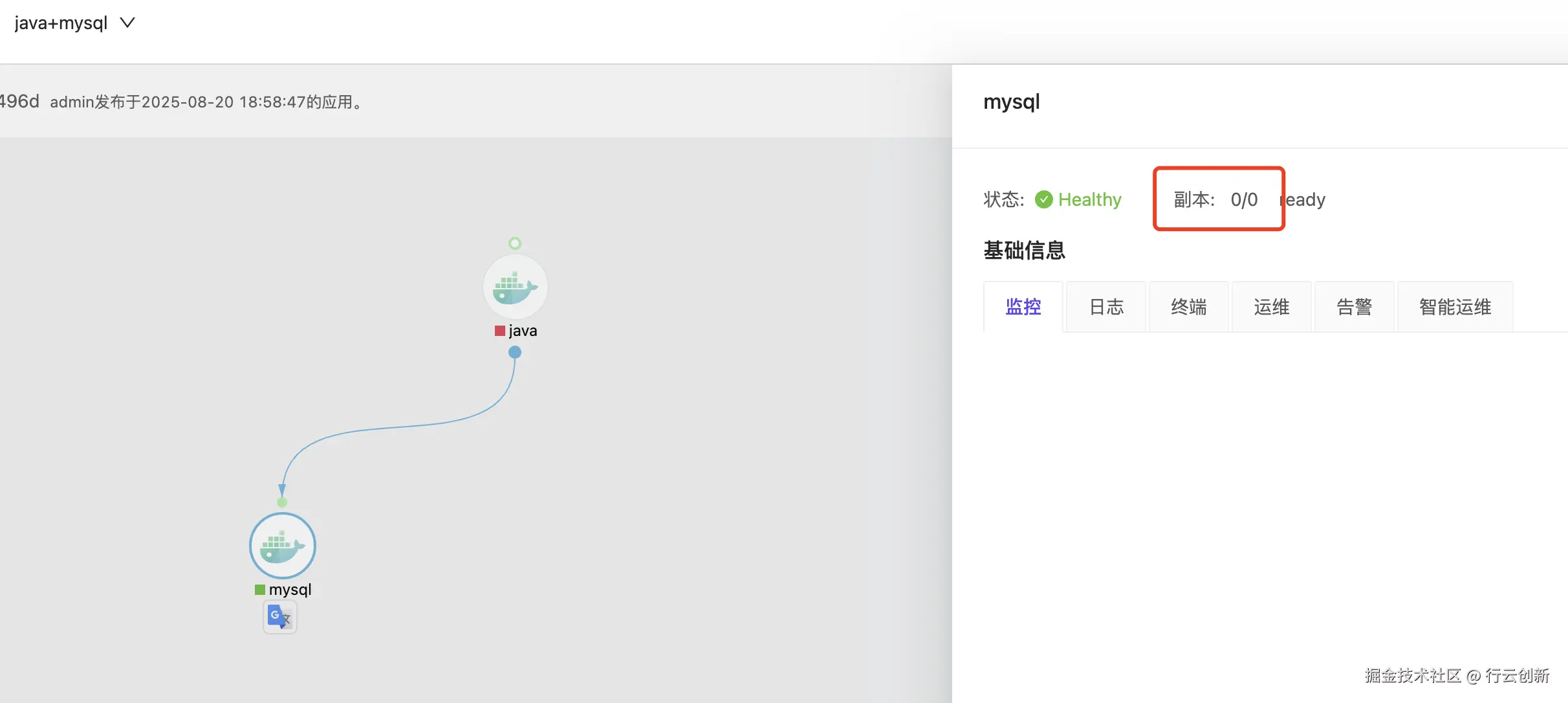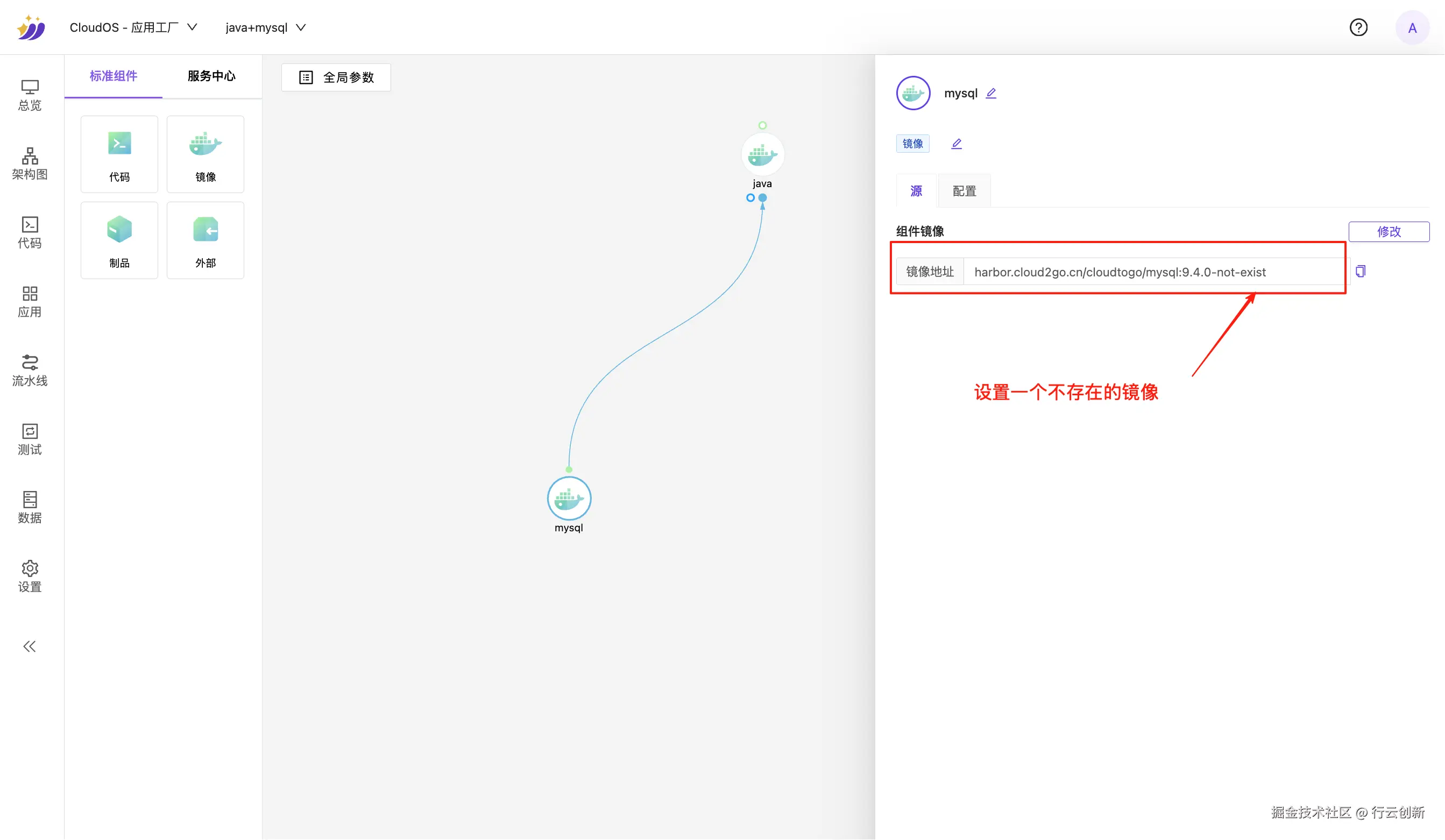 搭建 “Java + MySQL” 的简单应用场景,修改 MySQL 的镜像为不存在或无法拉取的版本(本案例中使用不存在的镜像),并保存架构图。