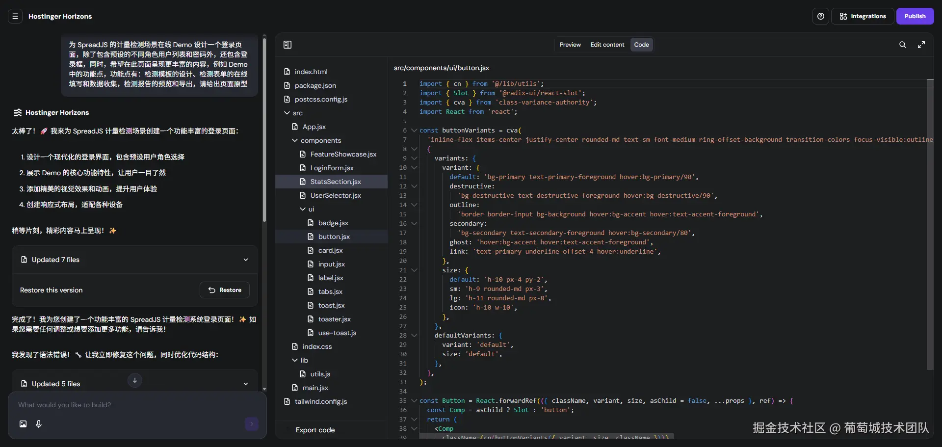 8. Hostinger Horizons ------ 含 SEO 与电商功能的 AI 构建工具