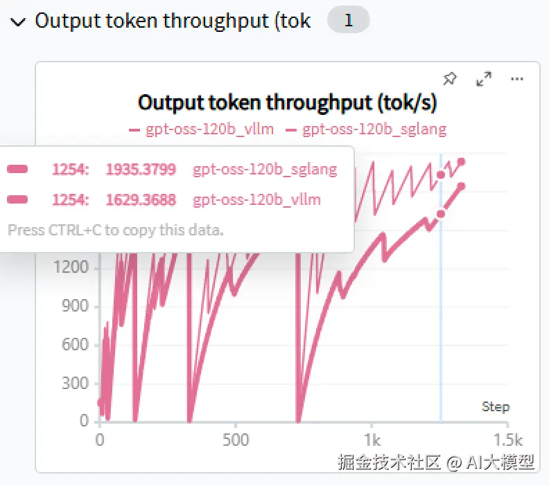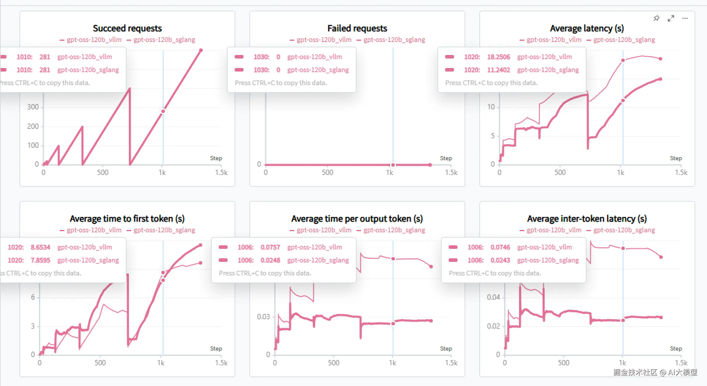在继续尝试了多种vLLM提供的各类参数后(例如--max-num-batched-tokens、--max-num-seqs等),我们仍然无法达到比第一次表现更好的测试。而在vLLM官方文档中提到的优化部分(例如并行策略、输入处理以及多模态Caching),均不适用于这次测试。从目前的情况来看,说明vLLM默认对单卡gpt-oss-120b已经做了相对不错的优化。