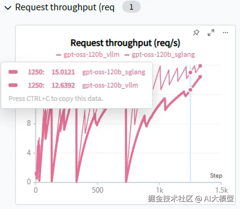可以看到,在当前场景下:SGLang整体表现优于vLLM。且随着并发升高,SGLang的吞吐也相较vLLM有更大的提升。