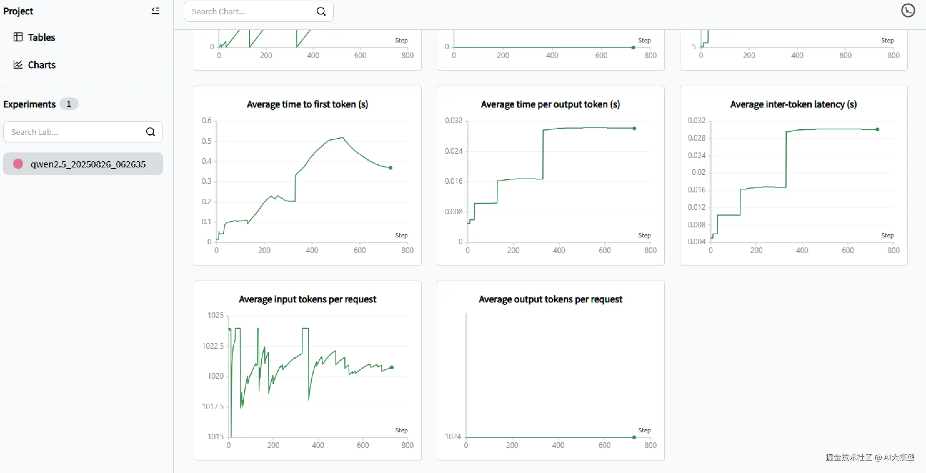 模型性能测试的结果可以通过wandb和swanlab进行可视化展示。这里以swanlab为例: