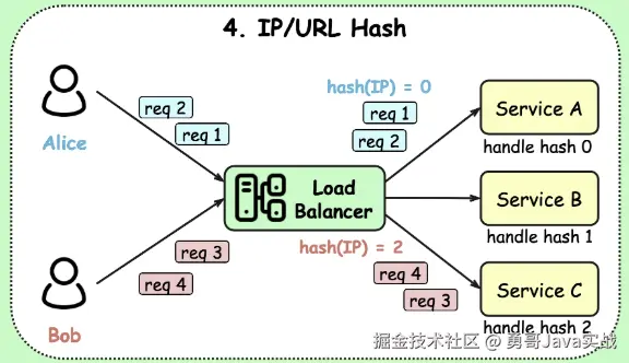 - 会话保持:一旦客户端首次请求被分配到某个服务实例,后续请求会"粘"在这个实例上
