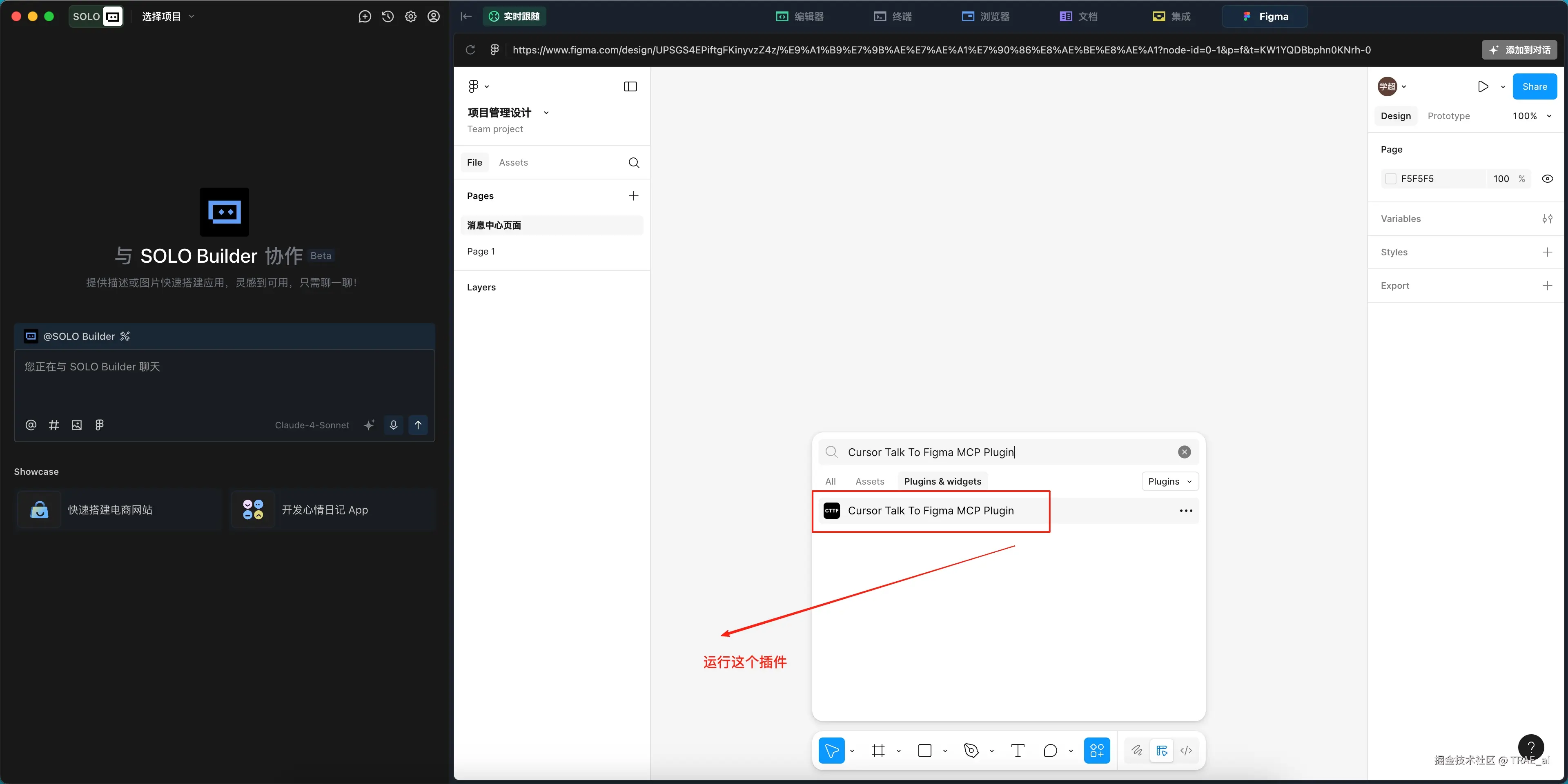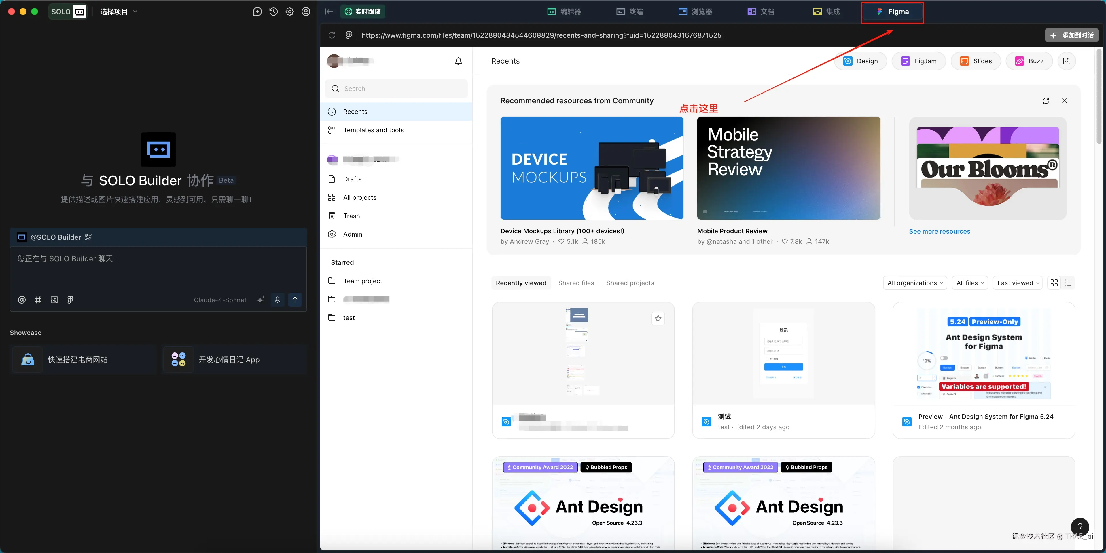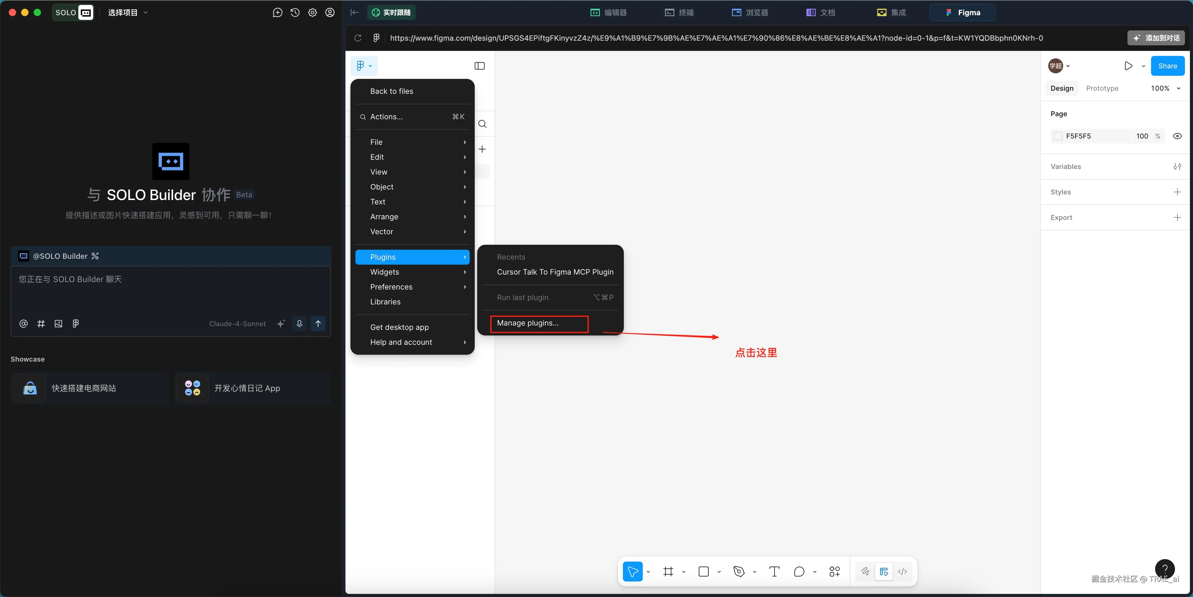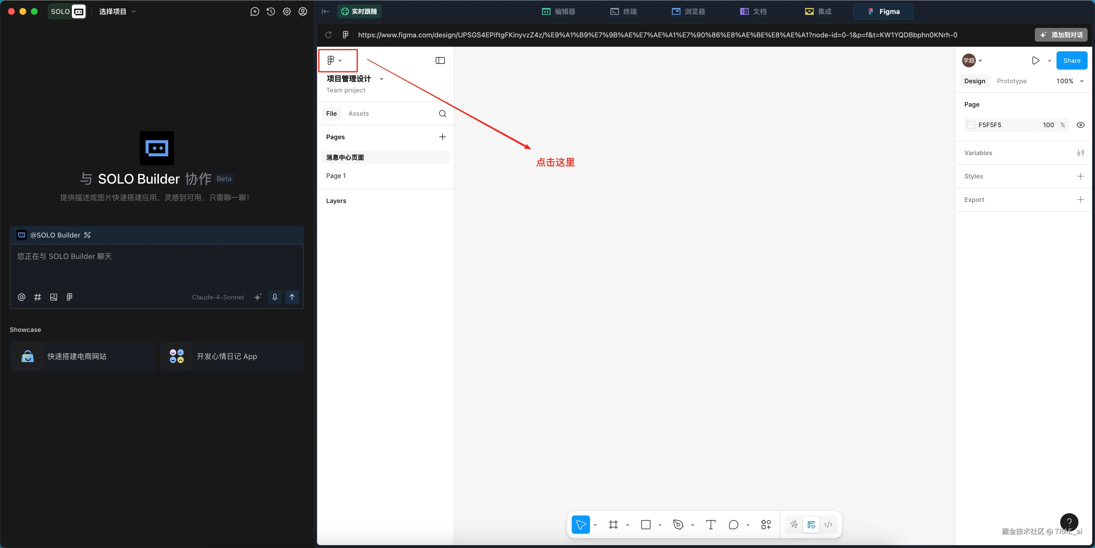 1. 点击编辑器中的 Figma 标签,登录到 Figma