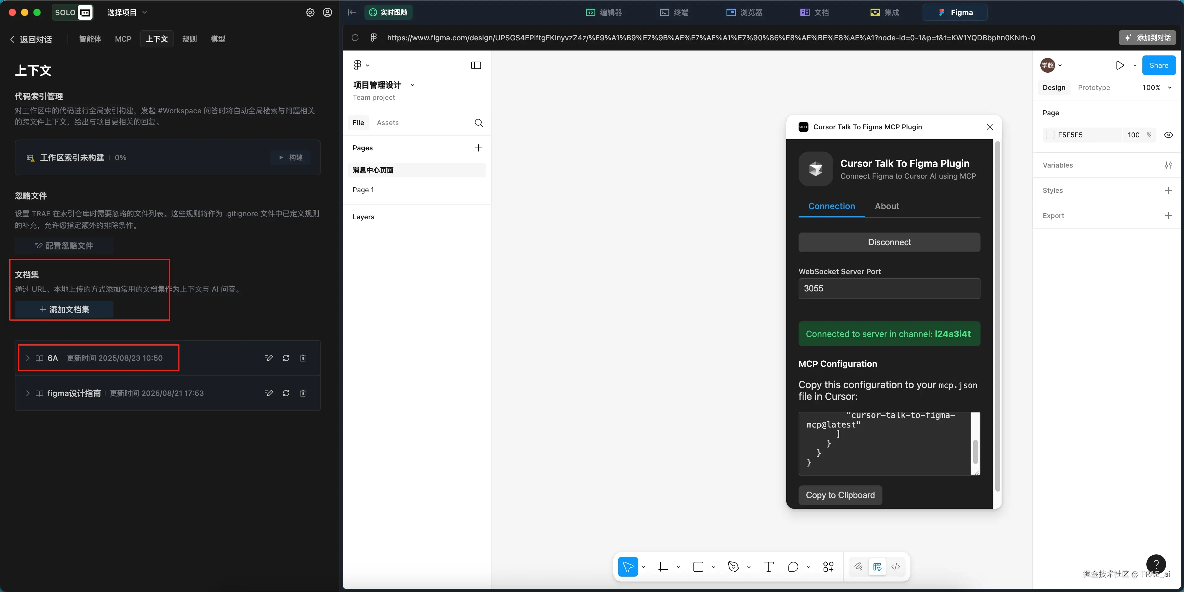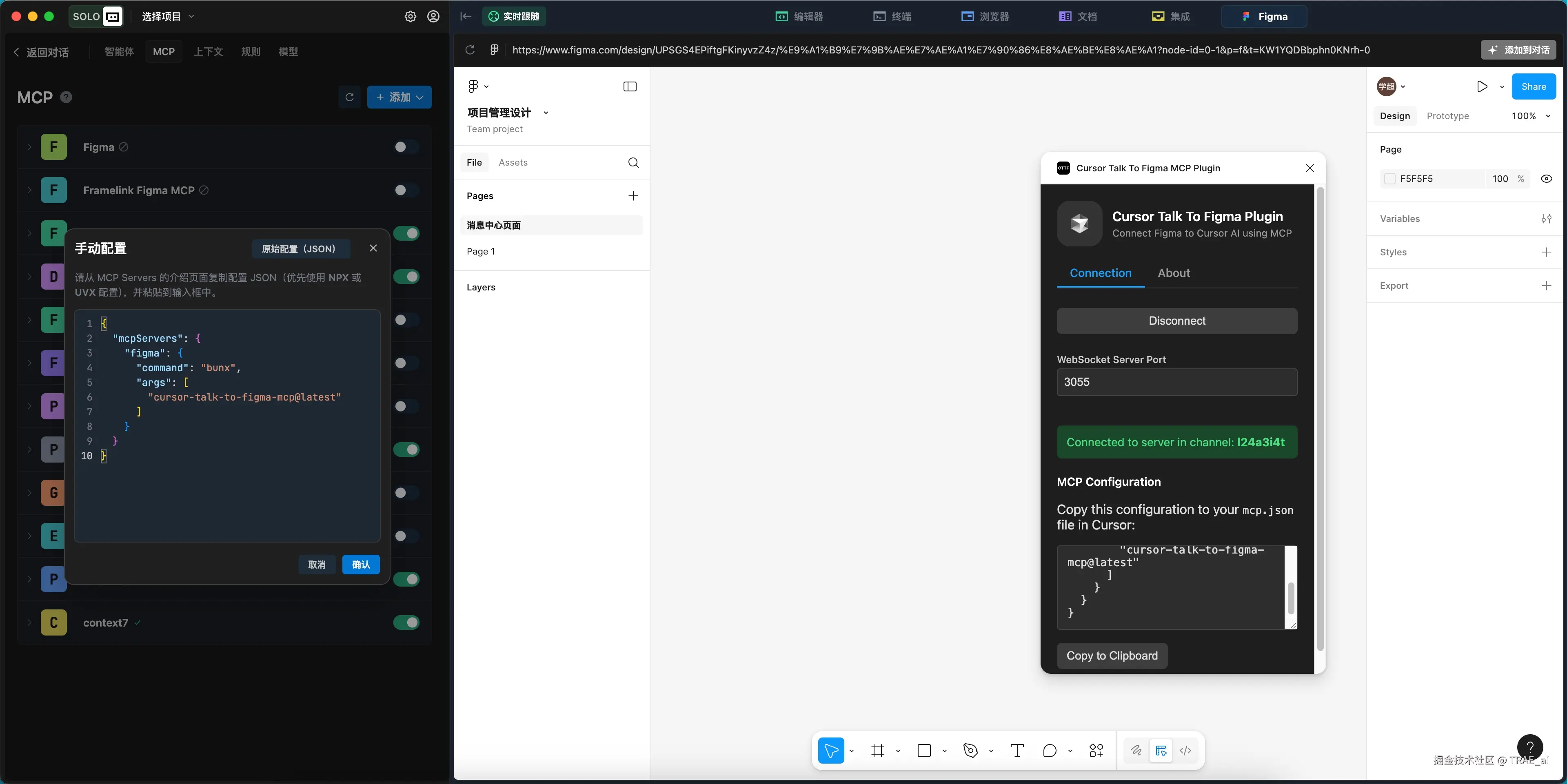 使用 MCP 时需要将 Connected to server in channel: 124a3i4t 信息提供给 AI,以便调用 MCP 链接对应的频道,否则无法正常调用 Figma MCP 服务。