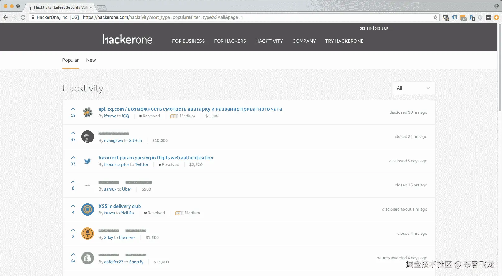 HackerOne 的 Hacktivity 部分和 Vulnerability Lab 的主页等是记录生产漏洞的优秀资源。