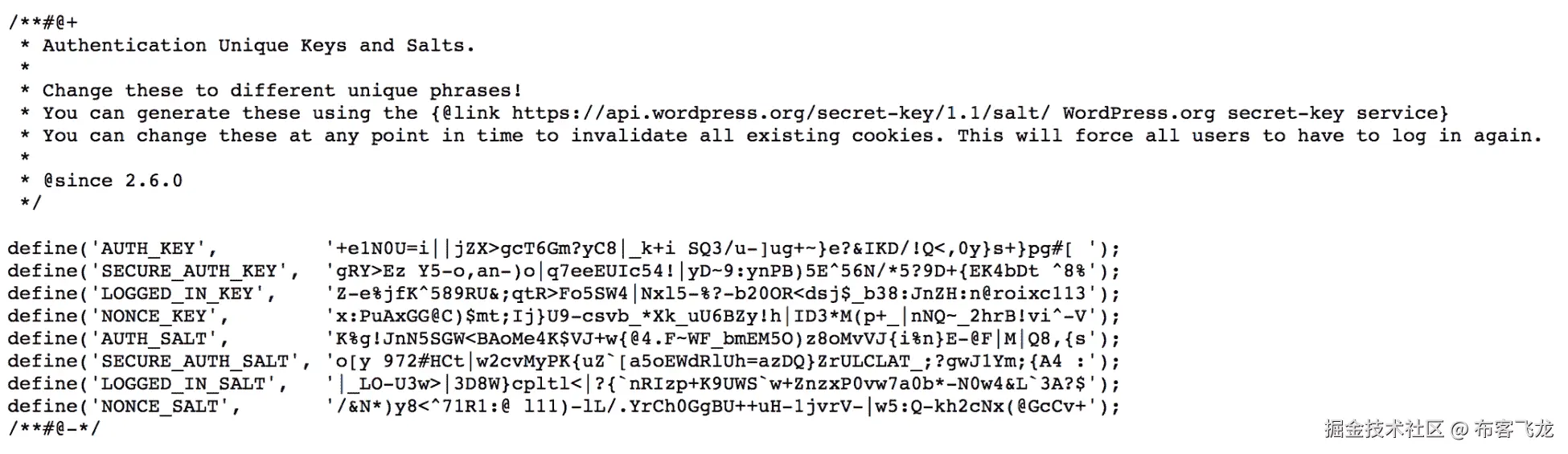你可以立刻看到一些值得跟进的发现——robots.txt 中的有趣条目:http://172.17.0.2/super-secret-admin-page/看起来特别有意思,考虑到那个诱人的 URI。但如果我们继续查看漏洞列表,我们将能看到几个配置文件。我们寻找认证凭据、隐藏的目录和其他有用的东西,导航到一个暴露的配置文件,wp-config.txt: