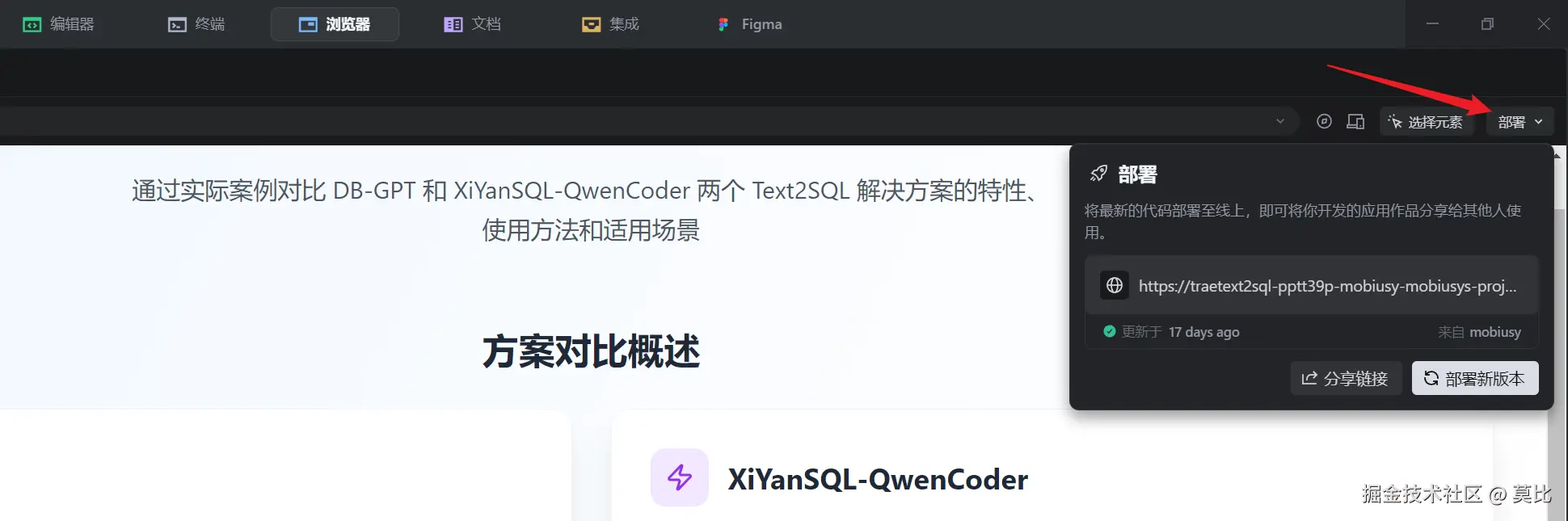 在 Trae 的 SOLO 模式, 浏览器 Tab 中,支持 “一键部署到 Vercel”—— 无需手动配置环境,点击按钮后等待几分钟,站点即可上线,适合追求效率的场景。