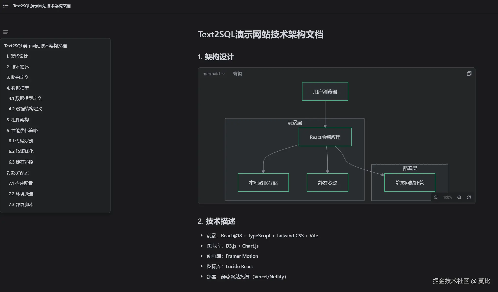- Text2SQL演示网站技术架构文档.md (确定技术栈、开发规范、部署方案)