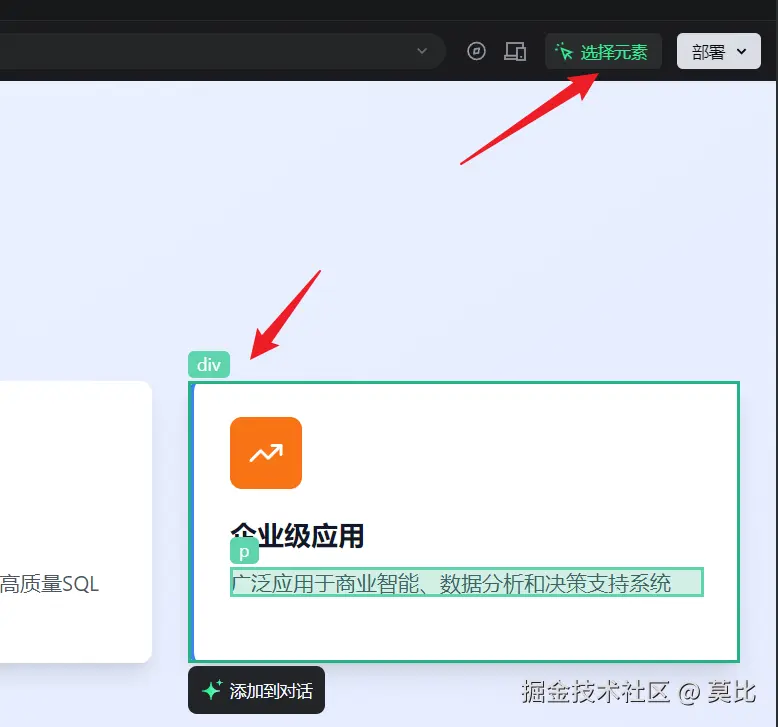 在选择对应的元素后,点击添加到对话,在对话中提出调整的要求: