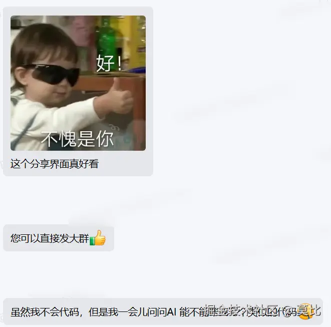 - 分享的本质是 “传递价值”,形式服务于内容:无论是 PPT 还是 Web 站点,核心都是让听众理解并吸收知识。这次实践证明,新颖的形式(如交互 Web 页)能提升听众的注意力与参与度,但前提是内容扎实(如豆包生成的高质量调研文档)—— 形式与内容结合,才能让分享更有价值。
