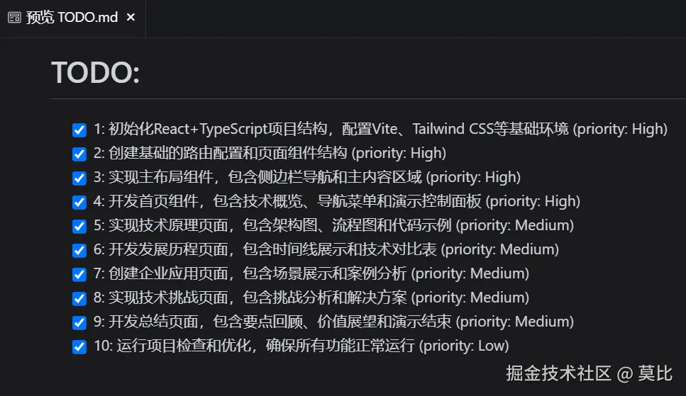 (2)启动开发:一键触发,按 “Todo List” 推进