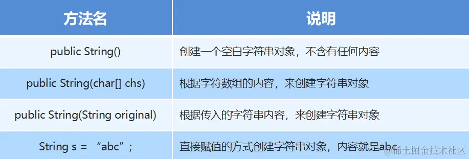 public String(String original) : 根据传入的字符串内容,来创建字符串对象