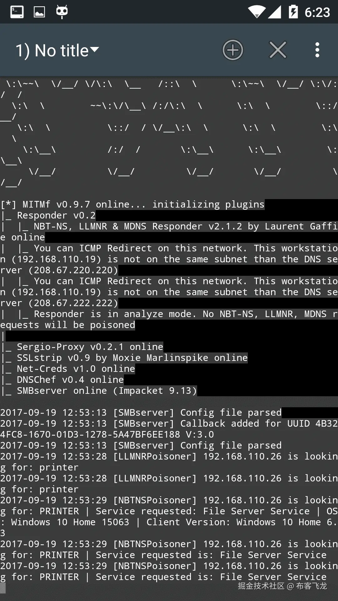 我们将看到一个终端窗口打开,我们的攻击将被执行。我们将看到攻击捕获的主机信息以及密码哈希: