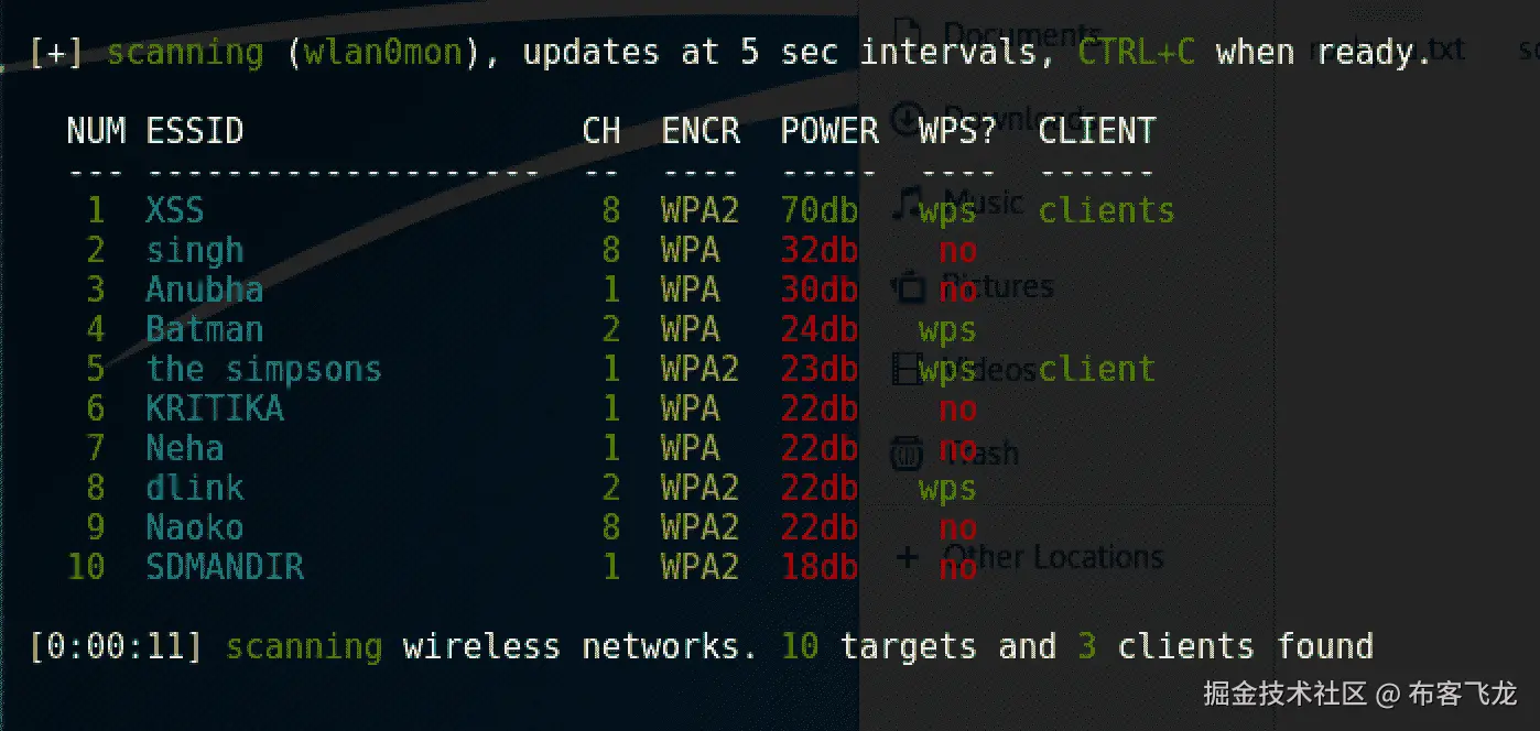 airodump-ng捕获数据包,并使用-w开关将这些数据包写入文件: