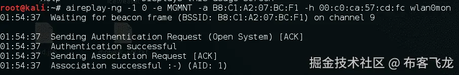 aireplay-ng,并使用以下命令执行伪身份验证: