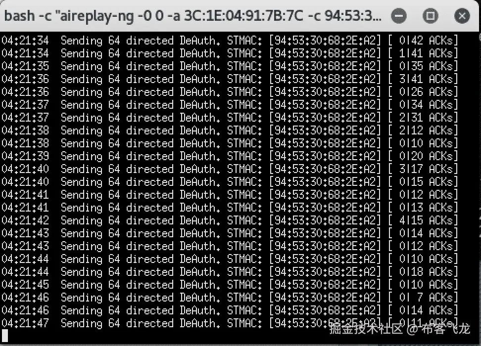 0以执行去认证攻击,然后点击“客户端去认证”按钮: