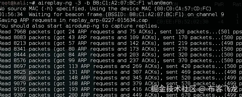 - 现在让我们使用以下命令进行 ARP 数据包重放: