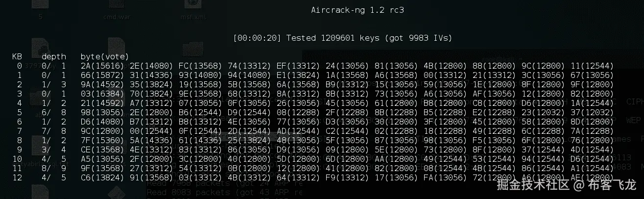 0开始,并随着数据包在路由器和其他设备之间传递而增加。我们至少需要 20,000 个初始化向量才能成功破解有线等效隐私(WEP)密码: -
