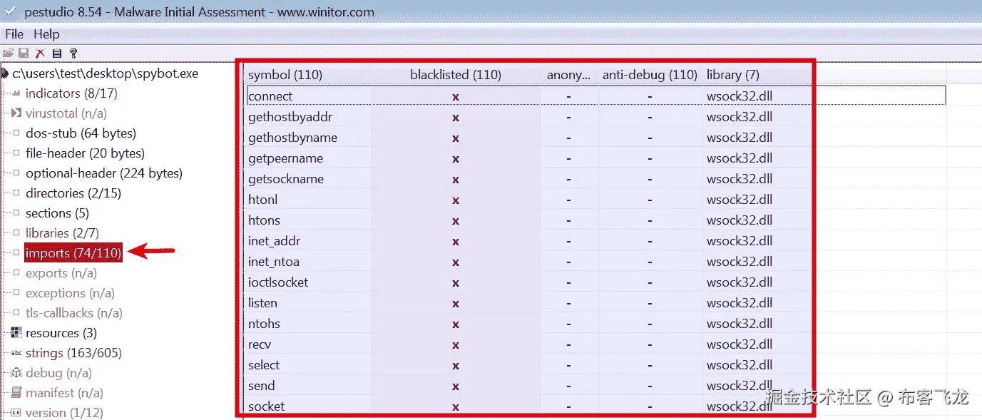 确定恶意软件的性质和目的。例如,它可以帮助你判断恶意软件是否是信息窃取者、HTTP 机器人、垃圾邮件机器人、Rootkit、键盘记录器或 RAT 等。