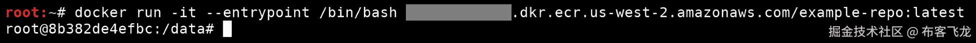 docker run -it --entrypoint /bin/bash 000000000000.dkr.ecr.us-west-2.amazonaws.com/example-repo:latest