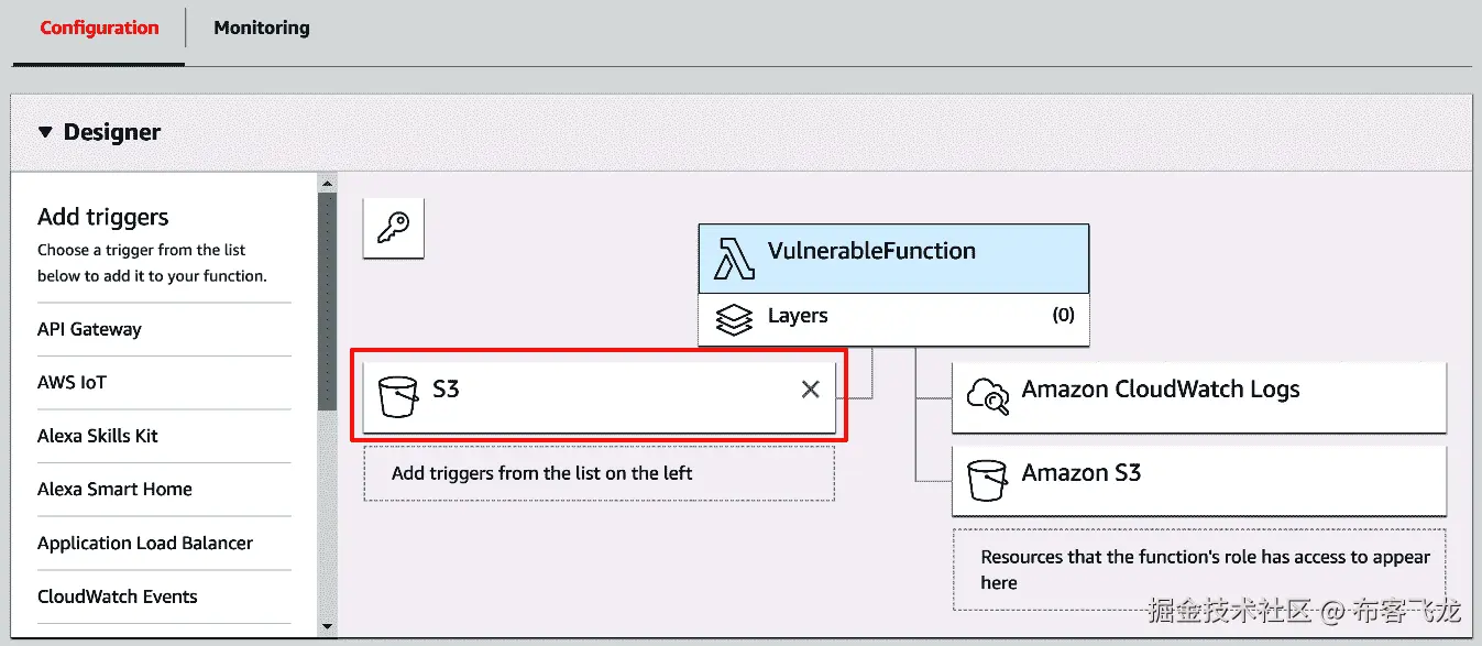 接下来,我们将要检查此模板中定义的资源。在这里,有各种可能遇到的事情。其中一个例子是为创建的 EC2 实例启动脚本。我们可以阅读这些内容,寻找任何敏感信息,同时了解这个堆栈部署的环境的设置/架构。