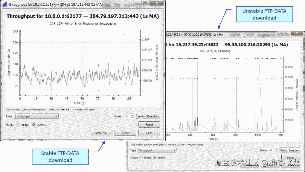 - 通过 TCP 流图获取信息–吞吐量窗口