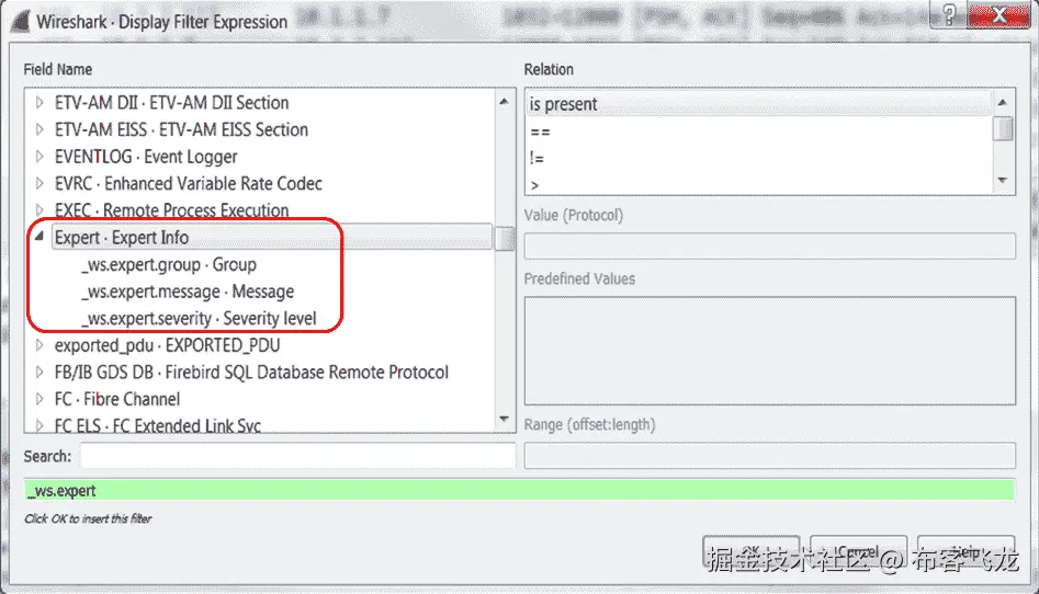 - 在显示过滤器列中配置所需的过滤器。顾名思义,该过滤器采用带有自动完成功能的显示过滤器语法。