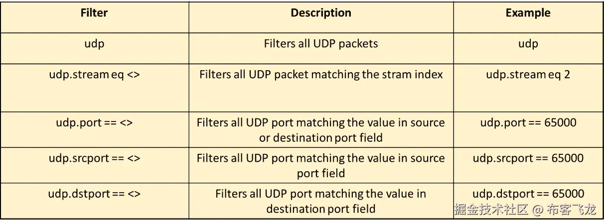 过滤器字段中设置的参数如下: