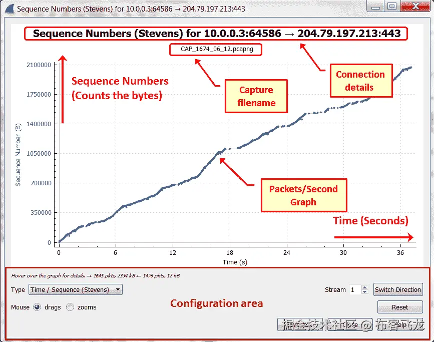 tcp.stream == <stream number>过滤器创建一个新图形。 - 示例如下所示: