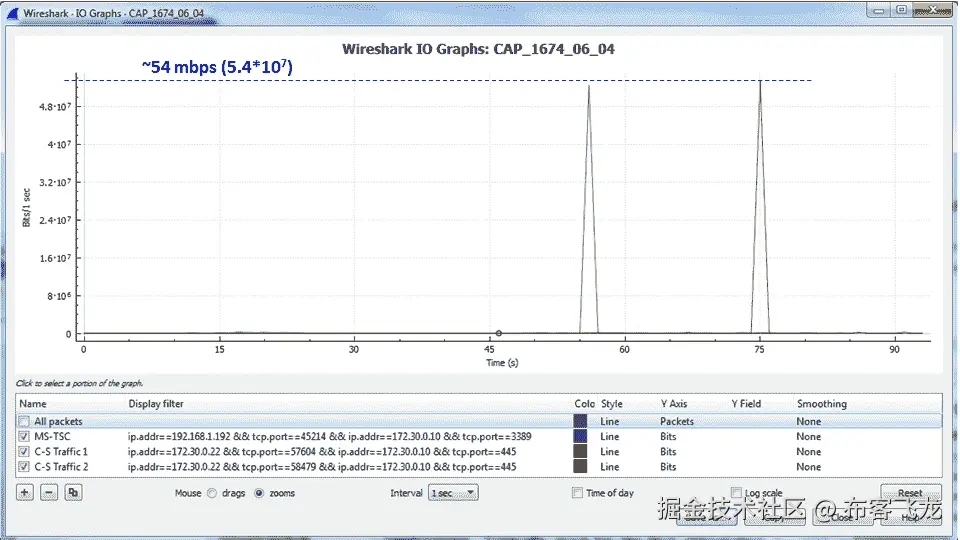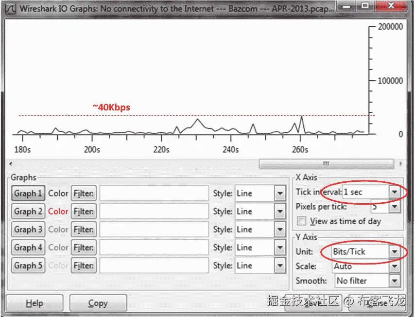 I/O 图形功能是重要的 Wireshark 工具之一,使我们能够监控在线性能以及离线捕获文件分析。