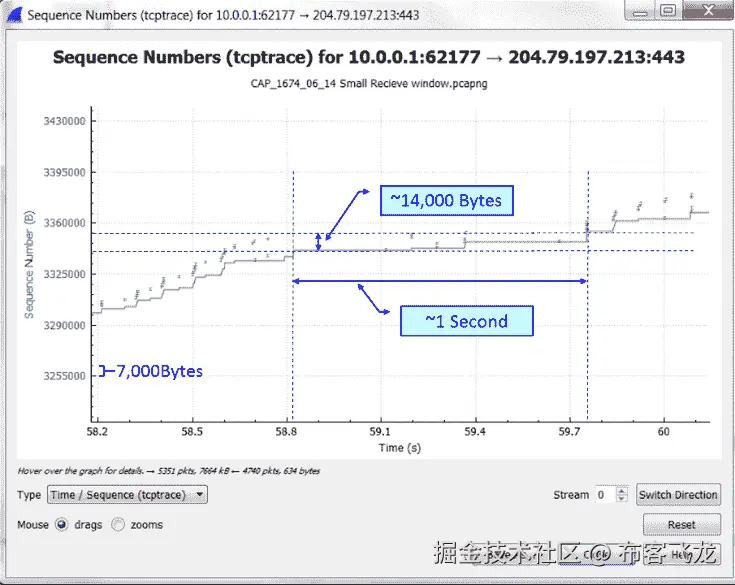 - 通过 TCP 流图获取信息–时间/顺序(Steven 的)窗口