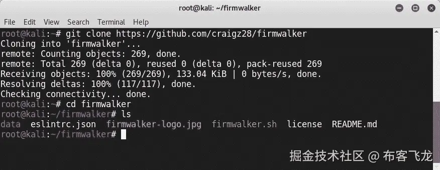 如果您使用 Kali Linux 发行版,可以通过在 CLI 中键入binwalk来直接使用 binwalk: