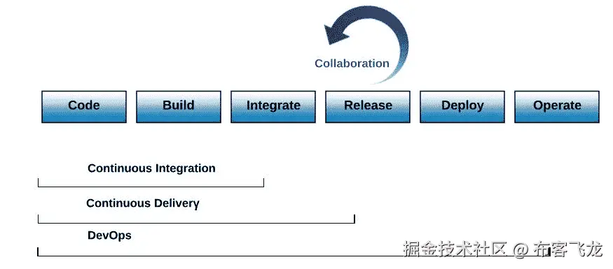 DevOps是一种增强的实践,它在整个产品生命周期中使开发人员和运营经理之间能够进行协作。这是一组工具和思维原则,用于成功地建立两方之间的沟通渠道。通过查看以下图表,您可以更清楚地了解: