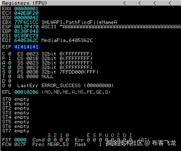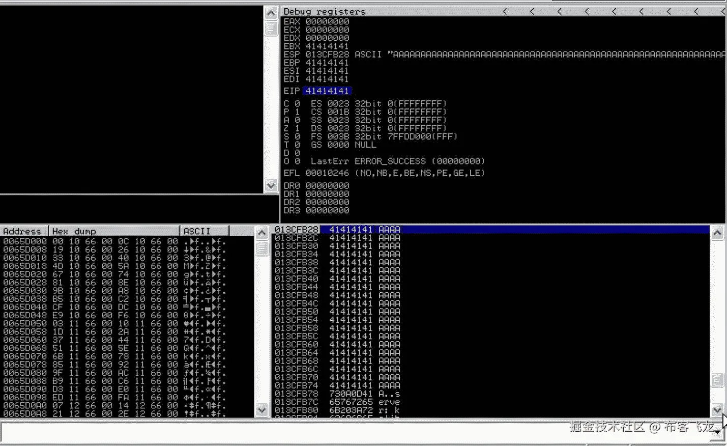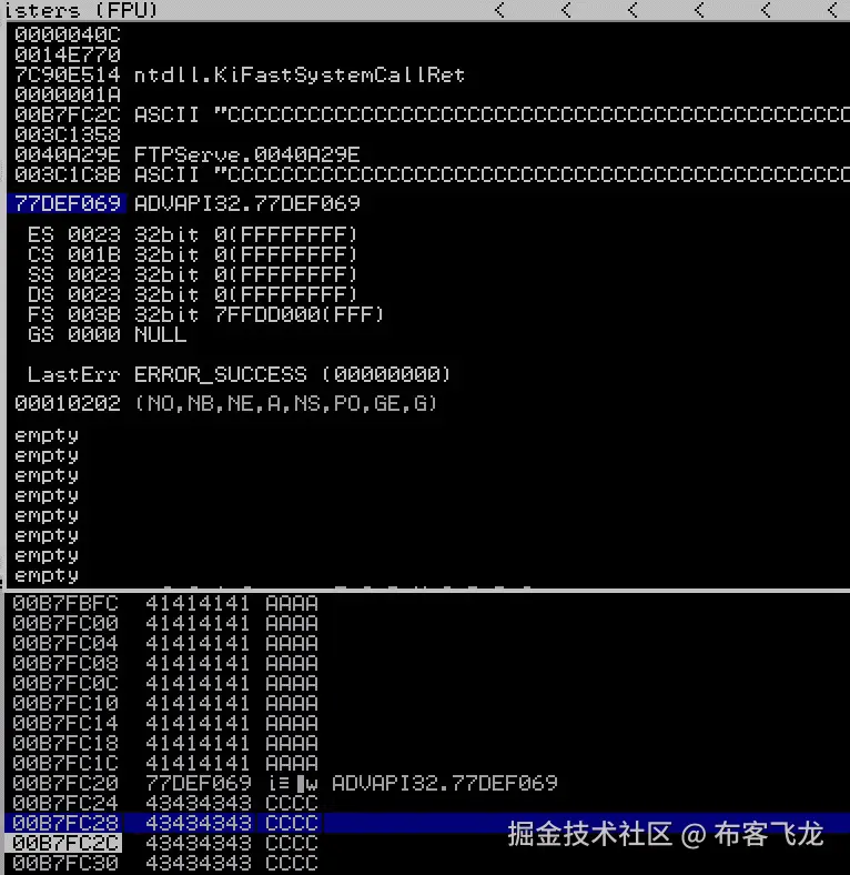 0xddccbbaa,这个地址是我们从 NOP sled 中选择的。为此,用正确的字节更新exploit.py: