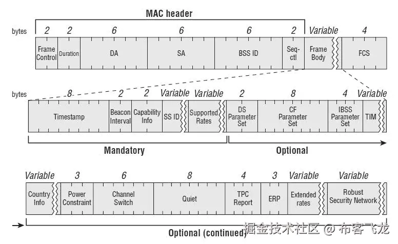 通过这个,我们可以了解信标帧的内容。信标帧中真正重要的项目如下: