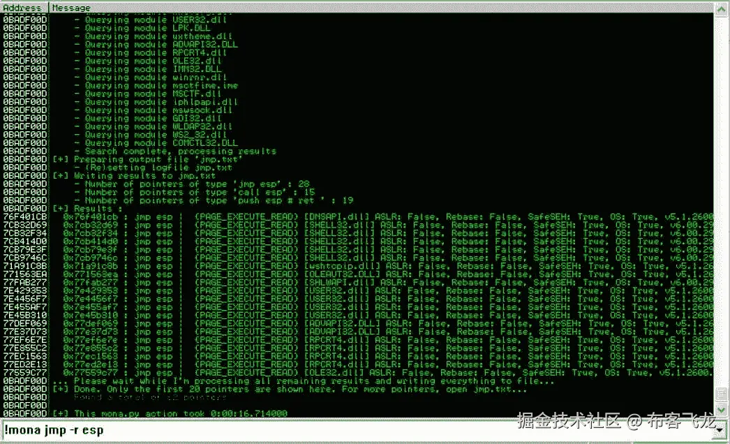 通过这样做,我们在每个%n之前添加了足够的前导零,以匹配打印字符的总数,并匹配我们计划写入的期望值。此外,每次写入时字节的总数都会增加;我们必须为每个值添加 256,以使最后的字节干净。